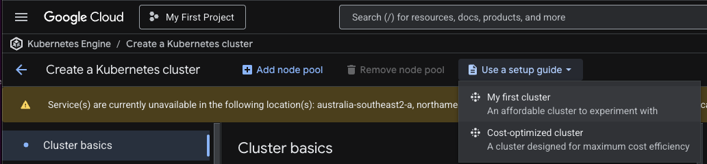 I ran into the same issue. I'm trying the "cost-optimized-cluster", which seems to be available under the free plan. "My First Cluster" still exceeded the limits.