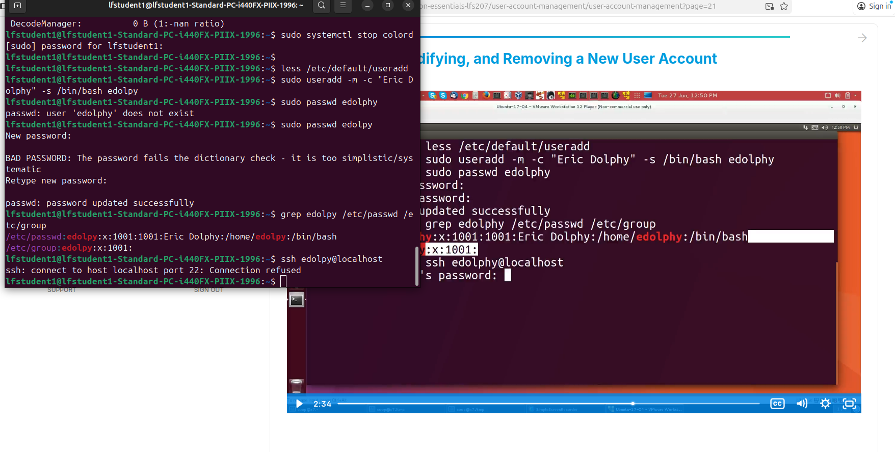 It was the Chapter 04. User Account Management, the Demo: Creating, Modifying, and Removing a New User Account Video which i tried to redo.