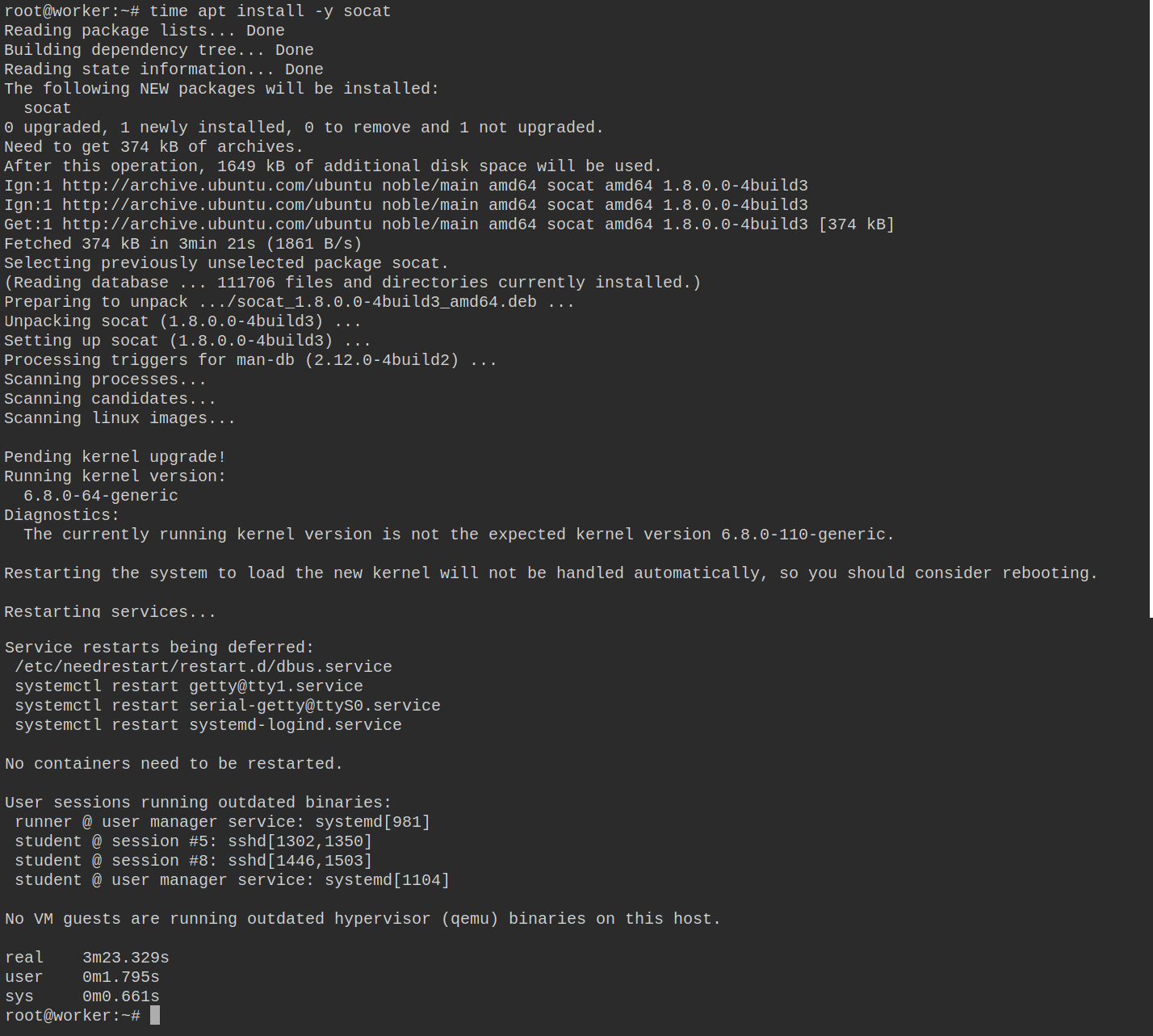 I am in Lab 3.2. - Grow the cluster, on the worker node.For example, when trying to install socat, it takes me more than 3 minutes.